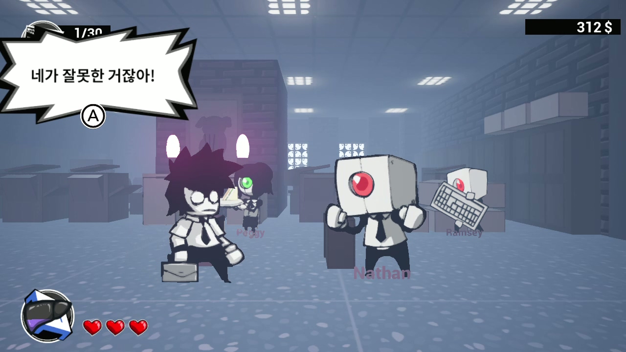 ■부서 돌파 전투: 인사부, 재무부, 영업부 등 다양한 부서를 거쳐 최종 보스가 기다리는 사장실을 돌파하라. 각 부서는 고유한 분위기와 개성을 갖추고 있으며, 플레이어는 직장 스킬과 각종 사무 용품을 활용해 오해와 악의로 가득한 회사에서 뛰쳐나가야 한다.