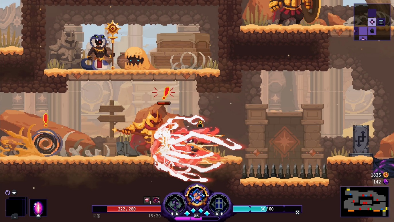 플레이마다 던전의 구성이 바뀌고 새로운 조건 속에서 탐험을 즐길 수 있다. 게임 오버가 되면 처음부터 다시 시작한다.
