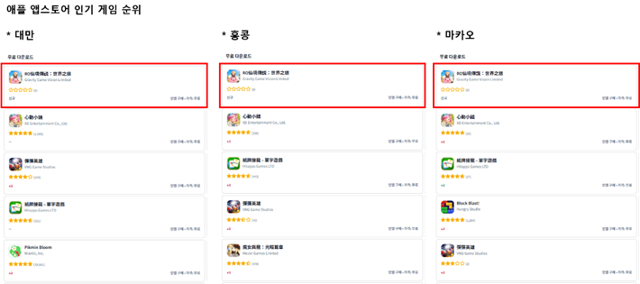 글로벌 게임 기업 그라비티의 홍콩 지사 그라비티 게임 비전(Gravity Game Vision, GGV)이 대만∙홍콩∙마카오 지역에 정식 론칭한 첫 오픈월드 MMORPG ‘RO선경전설: 세계지려(중문명 RO仙境傳說: 世界之旅, 영문명 Ragnarok: The New World)’가 3개 지역 모두에서 인기 게임 순위 상위권에 오르며 장기 흥행의 초석을 다지는 중이다.