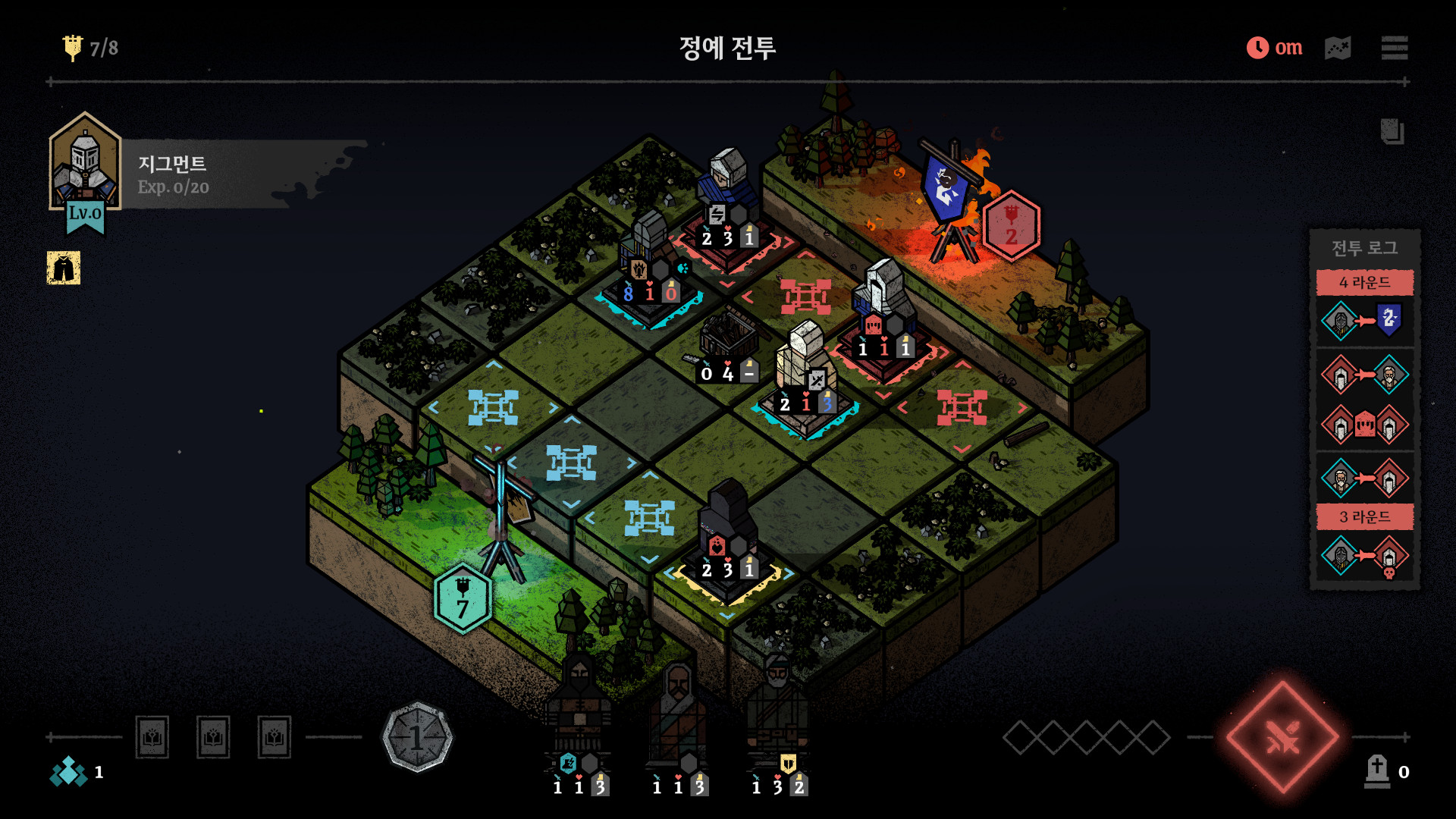 플레이어는 매 라운드마다 주어지는 행동력을 소모해 용병을 전장에 배치하고 전투를 진행하게 된다. 전투가 시작되면 용병들은 각자의 속도에 따라 순차적으로 행동하며, 플레이어는 이들을 가장 효율적으로 배치해 전장에서 승리를 노리게 된다. 전투는 각 용병의 능력치에 따라 결과가 전개되는 비교적 단순한 구조의 자동 전투 방식으로 진행되는 것이 특징이다. 그러나 이러한 시스템과는 별개로, 플레이어는 각 용병의 특성은 물론 지형, 체력, 상태 이상 등 다양한 요소와 변수를 종합적으로 고려해야 한다. 단 한 번의 판단 실수도 전장의 흐름을 뒤바꿀 수 있다.