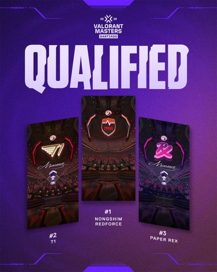 2026 발로란트 챔피언스 투어(VCT) 퍼시픽 킥오프에서 농심 레드포스와 T1이 각각 상위조와 중위조에서 1위를 차지하면서 칠레 산티아고에서 열리는 마스터스에 VCT 퍼시픽 대표로 출전한다.