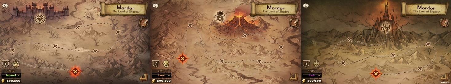 ‘반지의 제왕’ 세계관을 연상시키는 색 바랜 양피지 지도 콘셉트를 UI에 차용해, 유저가 던전에 접속하는 순간부터 소설 속 모험에 발을 디딘 듯한 느낌을 주도록 설계했다. 스테이지는 ‘블랙 게이트(Normal)’를 시작으로 ‘운명의 산(Hard)’, ‘바랏두르(Hell)’로 이어지며, 단계별로 ‘사우론의 입’, ‘우글록’, ‘앙마르의 마술사왕’ 등 소설 속 적대 세력들이 보스로 등장해 긴장감을 더한다. 텍스트로 읽던 모험을 ‘서머너즈 워’만의 전략 전투로 직접 체험해보는 재미가 이번 던전의 매력 포인트다.