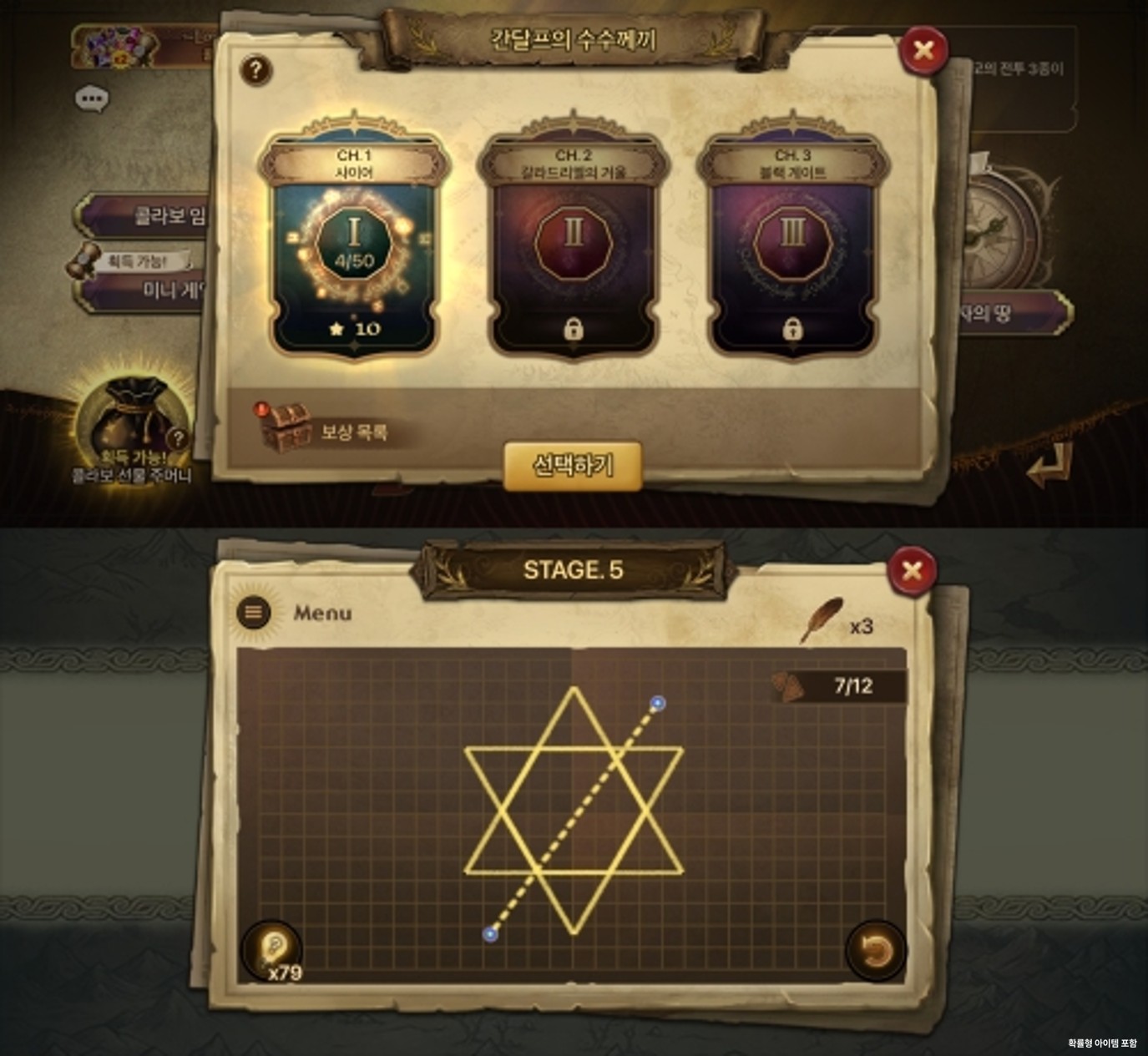 전투 외 즐길 거리인 미니 게임에도 소소한 재미가 숨어있다. ‘간달프의 수수께끼’는 도형을 특정 비율로 잘라내는 퍼즐 게임으로, 스마트폰 게임 시장의 태동기를 이끌었던 컴투스의 히트작 ‘슬라이스 잇!’을 기반으로 제작됐다. ‘슬라이스 잇’은 2010년대 초반 글로벌 1000만 다운로드를 달성하고 전 세계 31개 지역 애플 앱스토어 유료 앱 인기 1위, ‘2010 대한민국 게임대상’ 최우수상 수상 등을 기록하며 흥행한 작품이다.