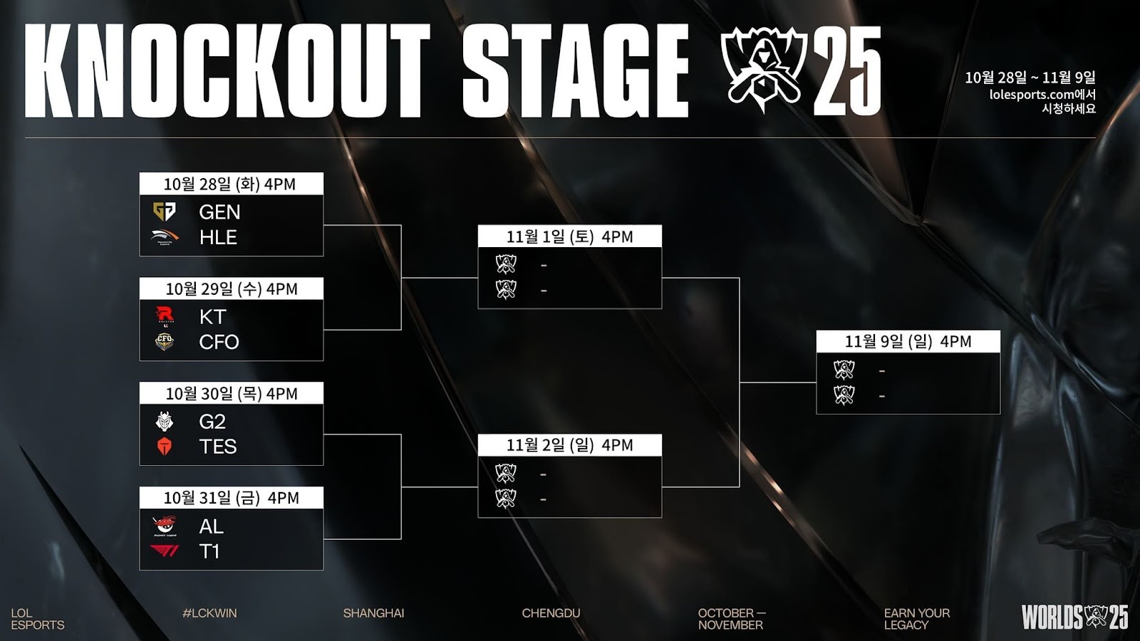 젠지와 한화생명e스포츠는 8강이 시작되는 첫째 날인 28일(화)로 진행된다. 지난 9월 인천 광역시에 위치한 인스파이어 아레나에서 펼쳐졌던 2025 LCK 결승전의 연장선이기에 어떤 결과가 나올지 귀추가 주목되고 있다.
