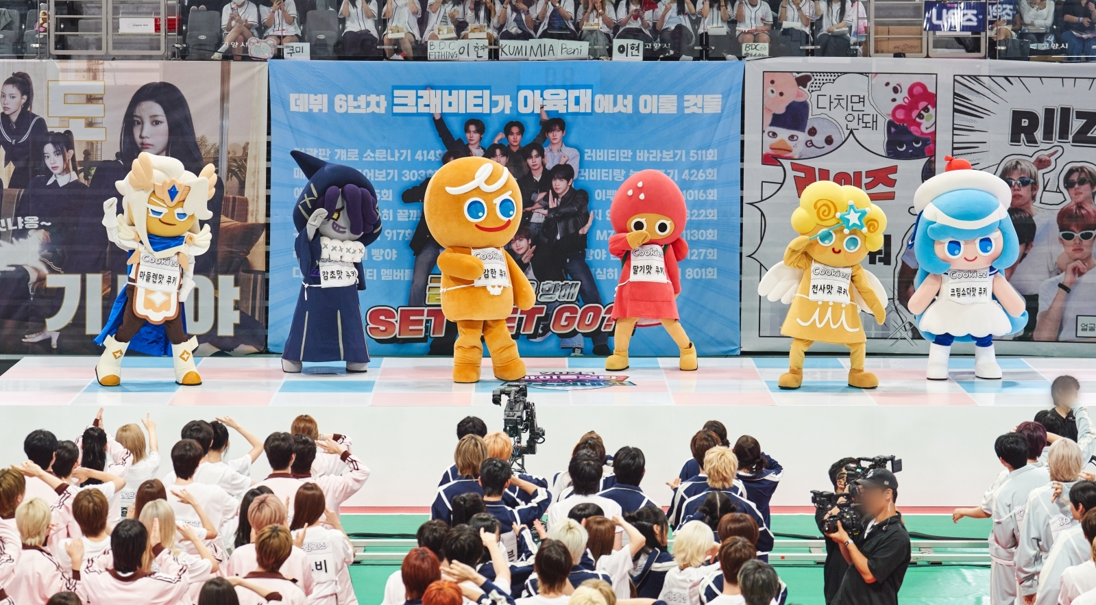 이번 아육대에서 쿠키런 캐릭터들은 케이팝 아이돌 컨셉의 그룹명 ‘쿠키즈(COOKIEZ)’로 대회 현장에 등장했다. 용감한 쿠키, 딸기맛 쿠키, 천사맛 쿠키, 마들렌맛 쿠키, 감초맛 쿠키, 크림소다맛 쿠키 등 인기 캐릭터 6종이 그룹을 결성해 케이팝 가수들의 친선 경쟁과 안전한 경기 진행을 응원했다.