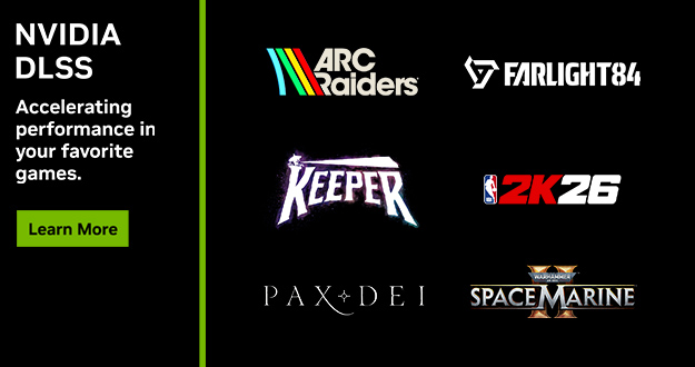 엔비디아가 신규 게임 6종에 DLSS 4 기술을 적용해 게이밍 경험을 한층 강화한다고 밝혔다. ‘아크 레이더스(ARC Raiders)’, ‘팍스 데이(Pax Dei)’, ‘키퍼(Keeper)’, ‘파라이트 84(Farlight 84)’, ‘워해머 40,000: 스페이스 마린 2(Warhammer 40,000: Space Marine 2)’에는 DLSS 4 멀티 프레임 생성(Multi Frame Generation)이, ‘NBA 2K26’에는 DLSS 슈퍼 레졸루션(Super Resolution)이 지원된다.