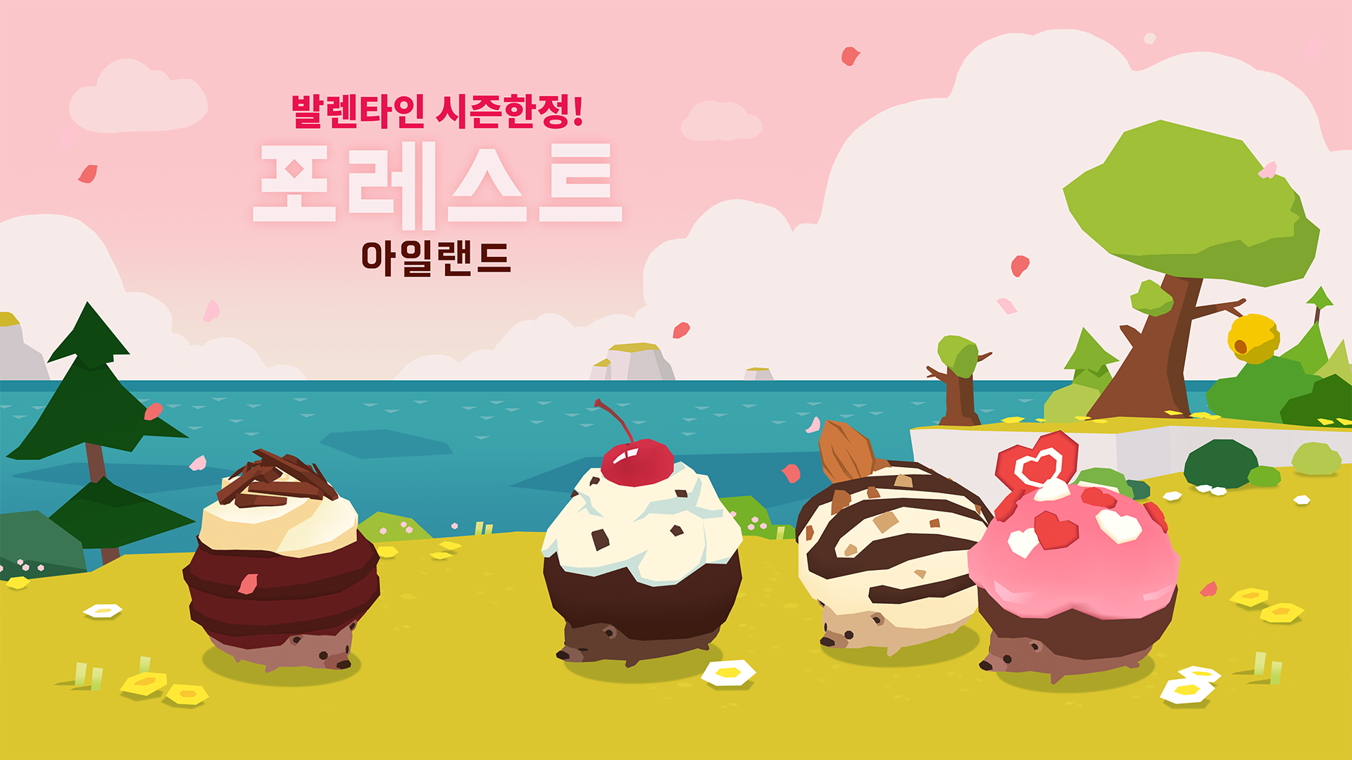 달콤한 발렌타인데이를 맞이해 사랑스러운 초콜렛 고슴도치와 아몬드 고슴도치, 체리 고슴도치, 하트 고슴도치가 포레스트 아일랜드에 찾아온다.
