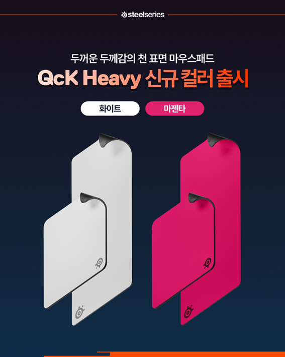 더불어 스틸시리즈는 e스포츠 선수들의 신뢰를 받고 있는QcK 마우스패드 시리즈의 신제품도 선보인다. 이번에 출시된 ‘QcK Heavy’ 게이밍 마우스패드는 ‘에어록스 3 무선 Gen 2’ 마우스와 동일한 컬러 옵션을 새롭게 제공한다. ‘QcK Heavy’는 도톰한 고밀도 고무 베이스와 프리미엄 마이크로 우븐 소재를 사용하여 세밀한 움직임 추적, 정확한 브레이킹, 안정적인 글라이드 환경을 제공한다. 또한, 선도적인 센서 제조업체인 픽스아트 이미징(PixArt Imaging)에서 광범위한 테스트와 승인을 받은 바 있다. 이 제품은 포트나이트, GTA, 발로란트 등의 인기 게임에서 뛰어난 성능을 제공하도록 설계됐다.