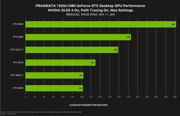 지포스 RTX 50 시리즈 GPU에서는 몰입감 높은 PC 전용 패스 트레이싱 효과와 DLSS 멀티 프레임 생성 가속, DLSS 레이 리컨스트럭션 향상, 엔비디아 리플렉스 최적화를 통해 ‘프래그마타’에서 뛰어난 그래픽 충실도와 몰입감을 경험할 수 있다.