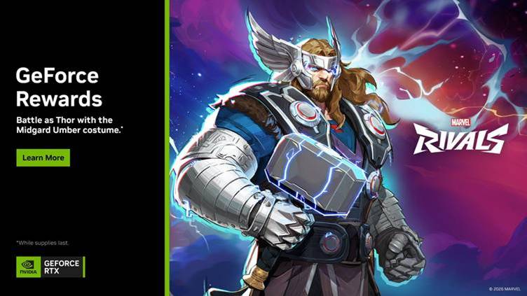 또한 ‘마블 라이벌즈(Marvel Rivals)’ 시즌 7.5 출시를 기념해 엔비디아 앱 사용자는 한정 수량으로 무료 토르(Thor) 코스튬을 받을 수 있다.